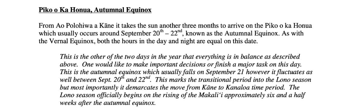 Piko o Wākea - Autumnal Equinox