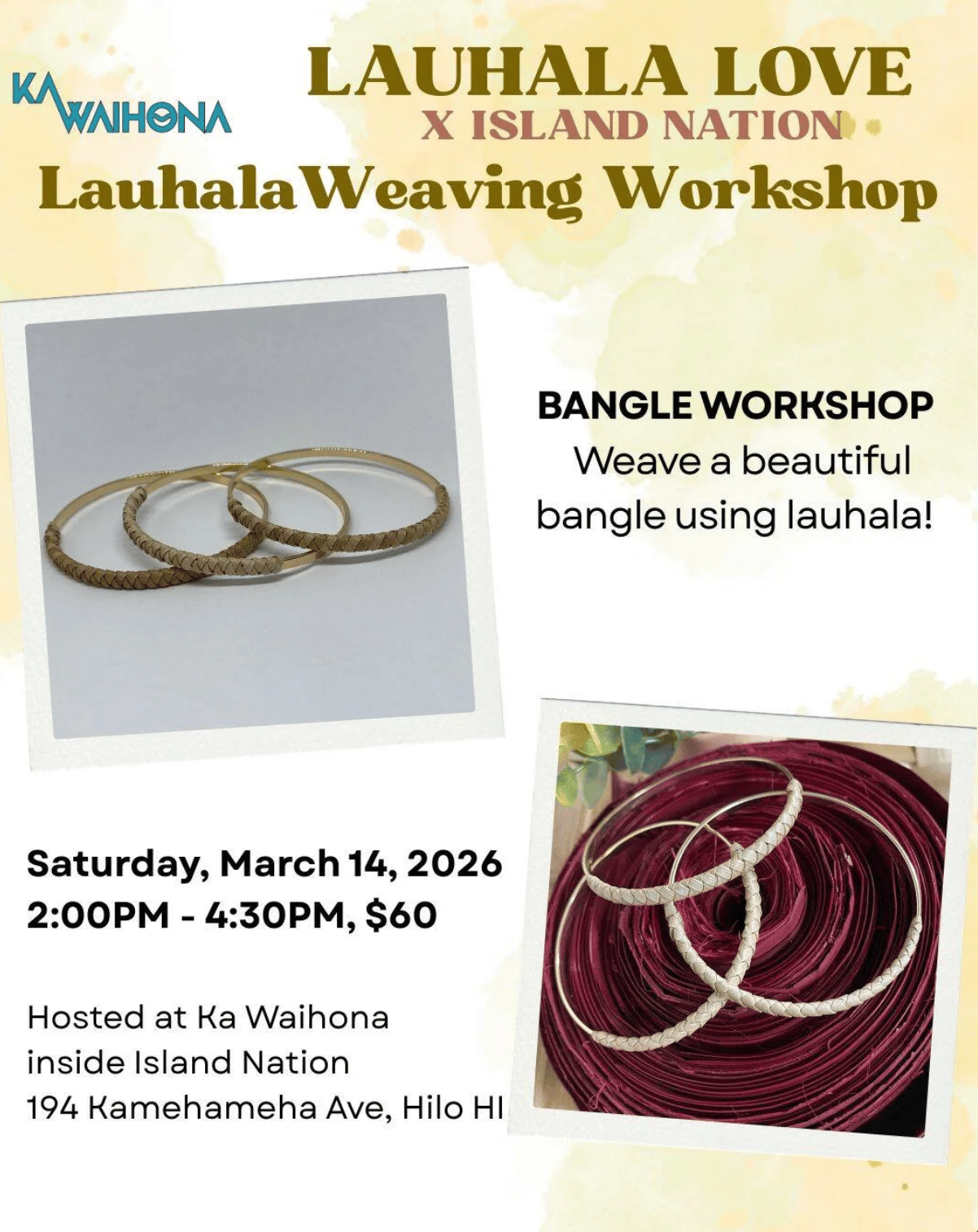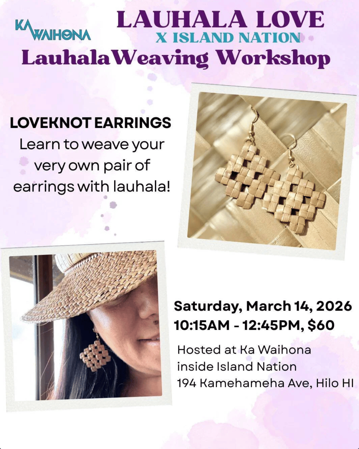 Lauhala Weaving Workshops on Sat March 14th at Ka Waihona in Island Nation. All materials included. Register at https://www.kawaihona.com
