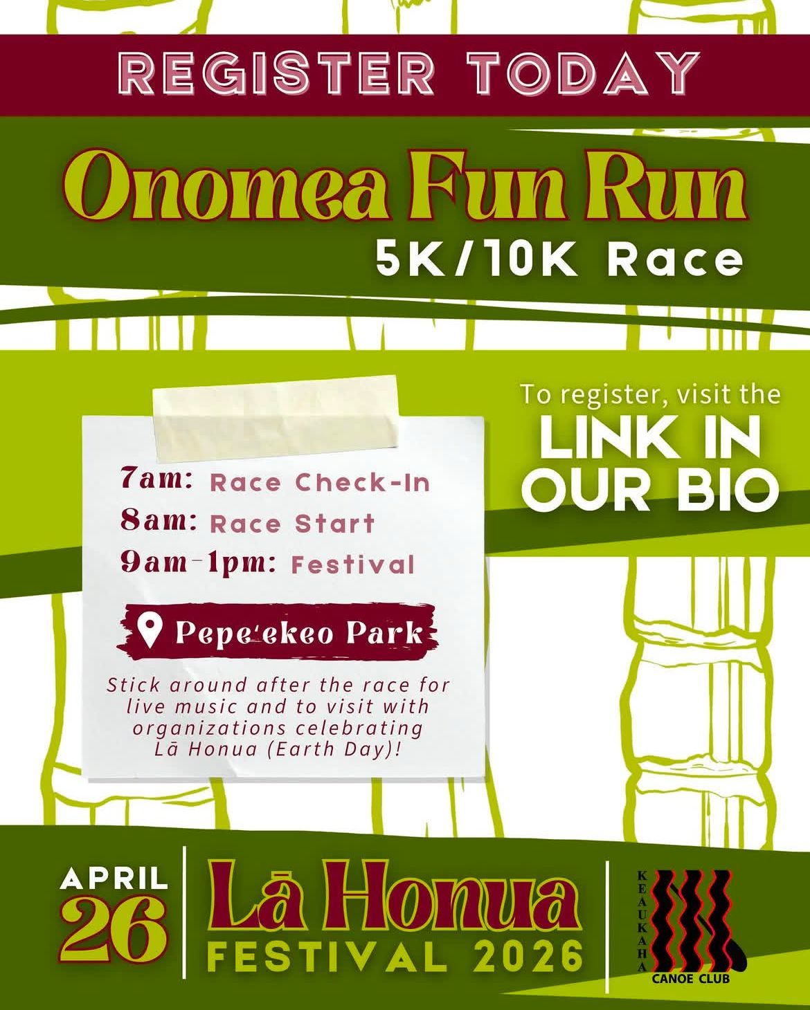 Join us on April 26th to run or walk along the historic Old Māmalahoa Highway. This year, in addition to the 5K course, weʻre excited to introduce a 10K route for anyone wanting a little extra challenge!